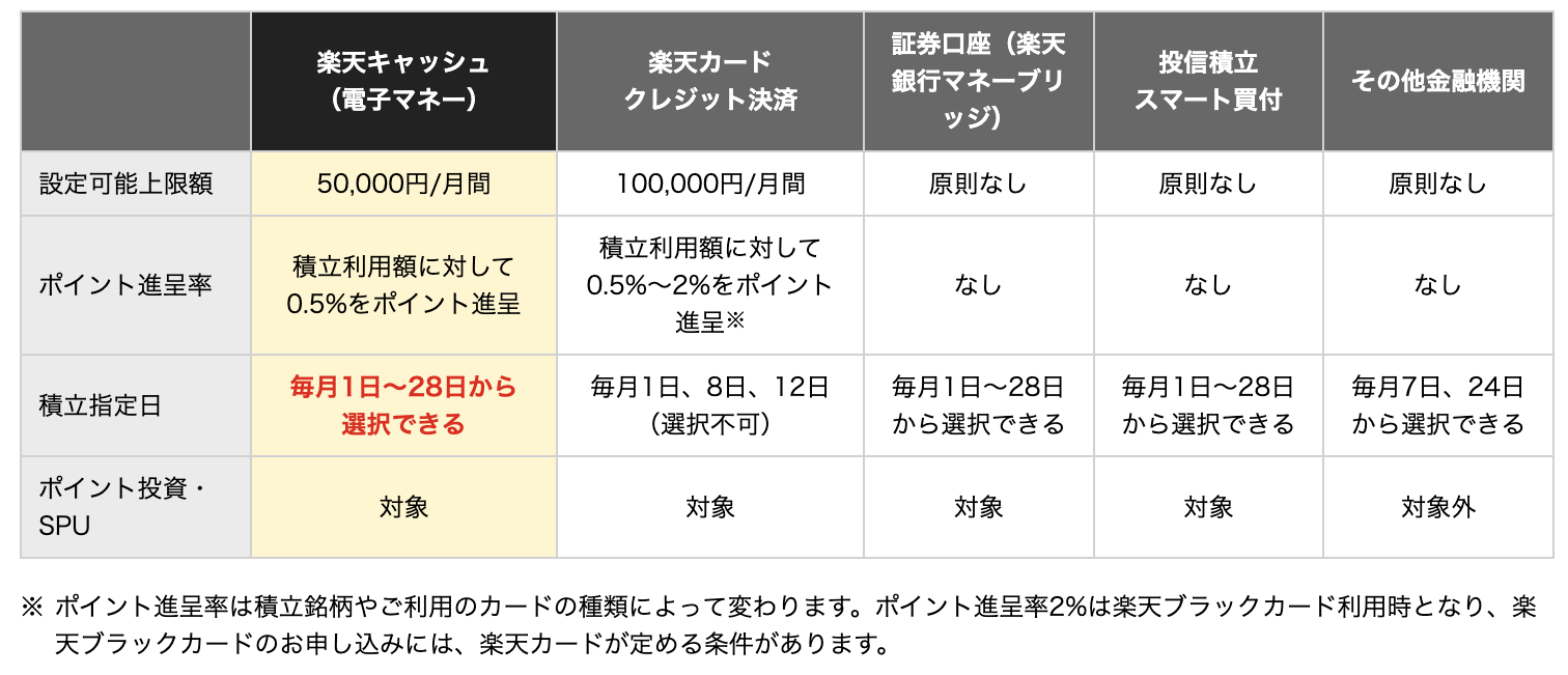 ちなみに、楽天証券は楽天キャッシュで投資すると0.5%分のポイントがもらえます🎉