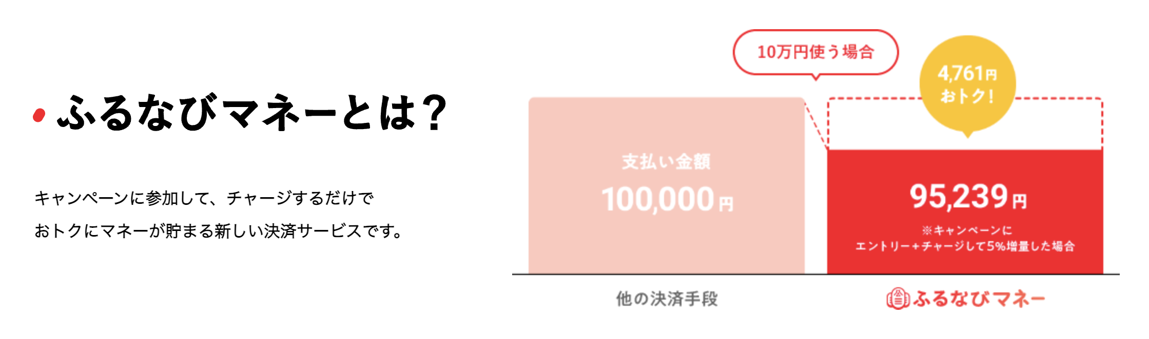 例えば、10万円のふるさと納税をするなら、95,239円のチャージでOKってことか😳
