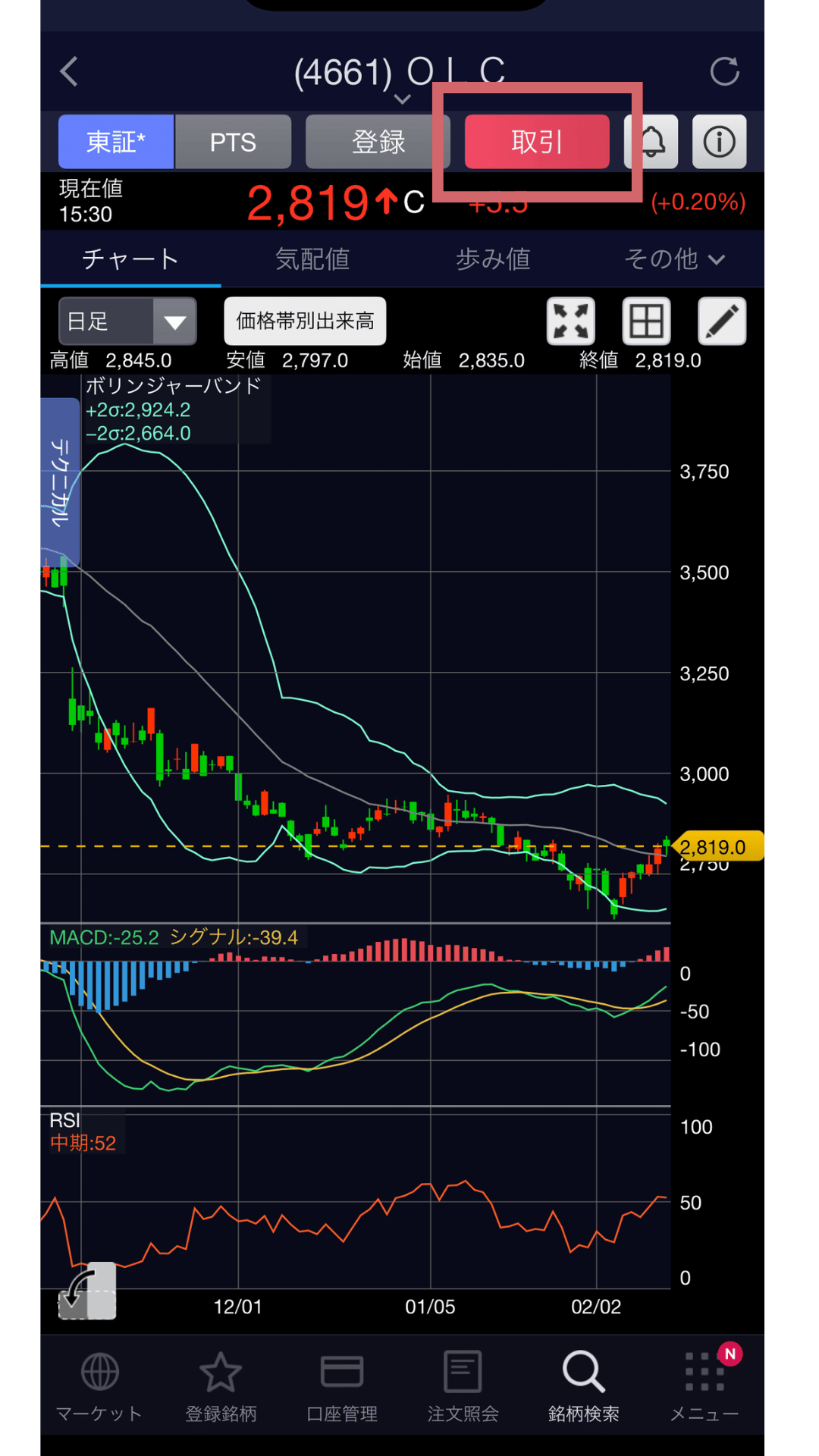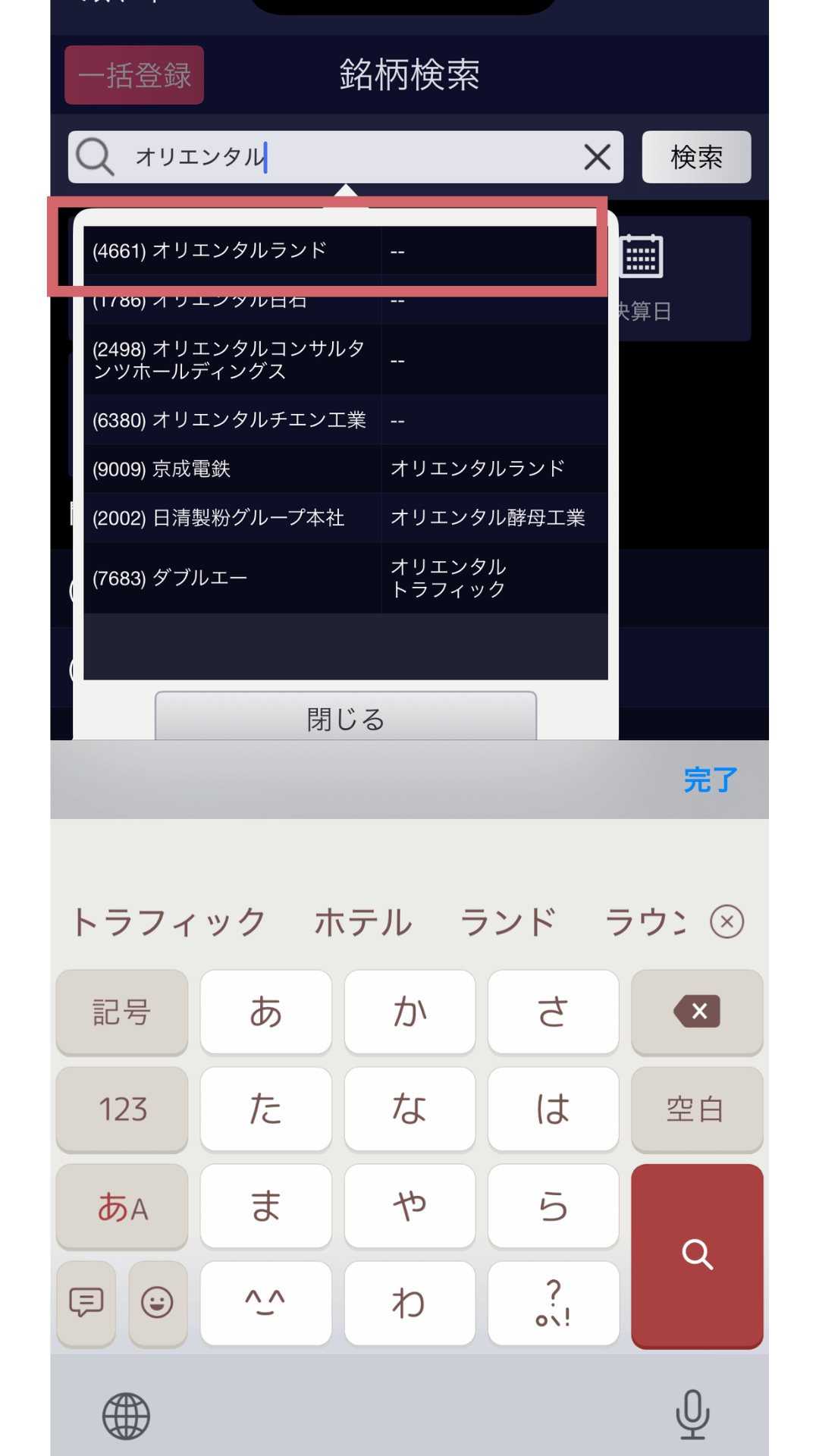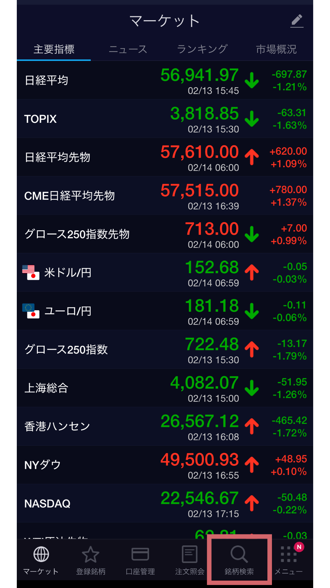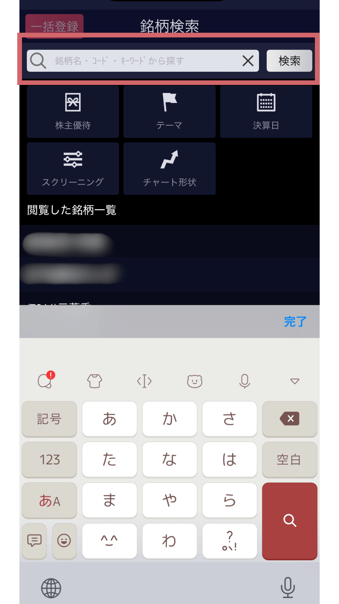 銘柄検索をタップ