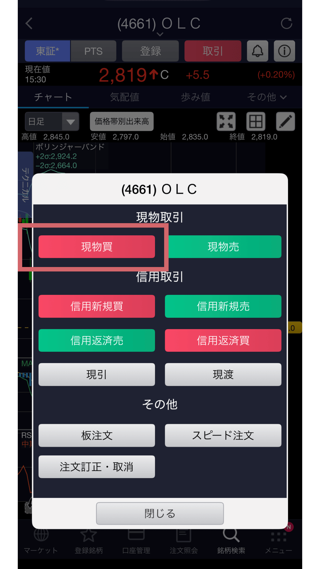 「現物買」をタップ